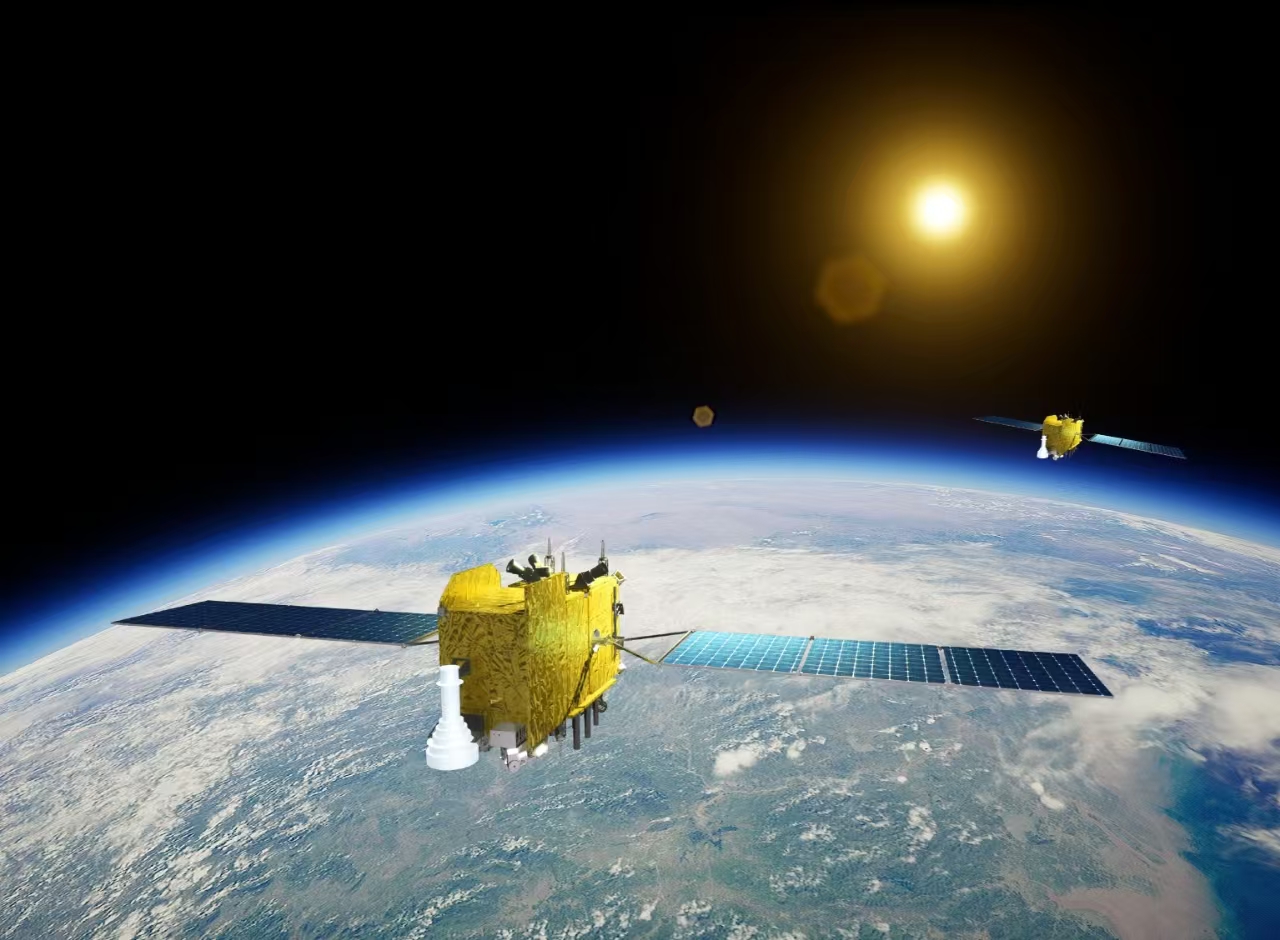 第五十九顆、六十顆北斗導(dǎo)航衛(wèi)星在軌運(yùn)行圖。