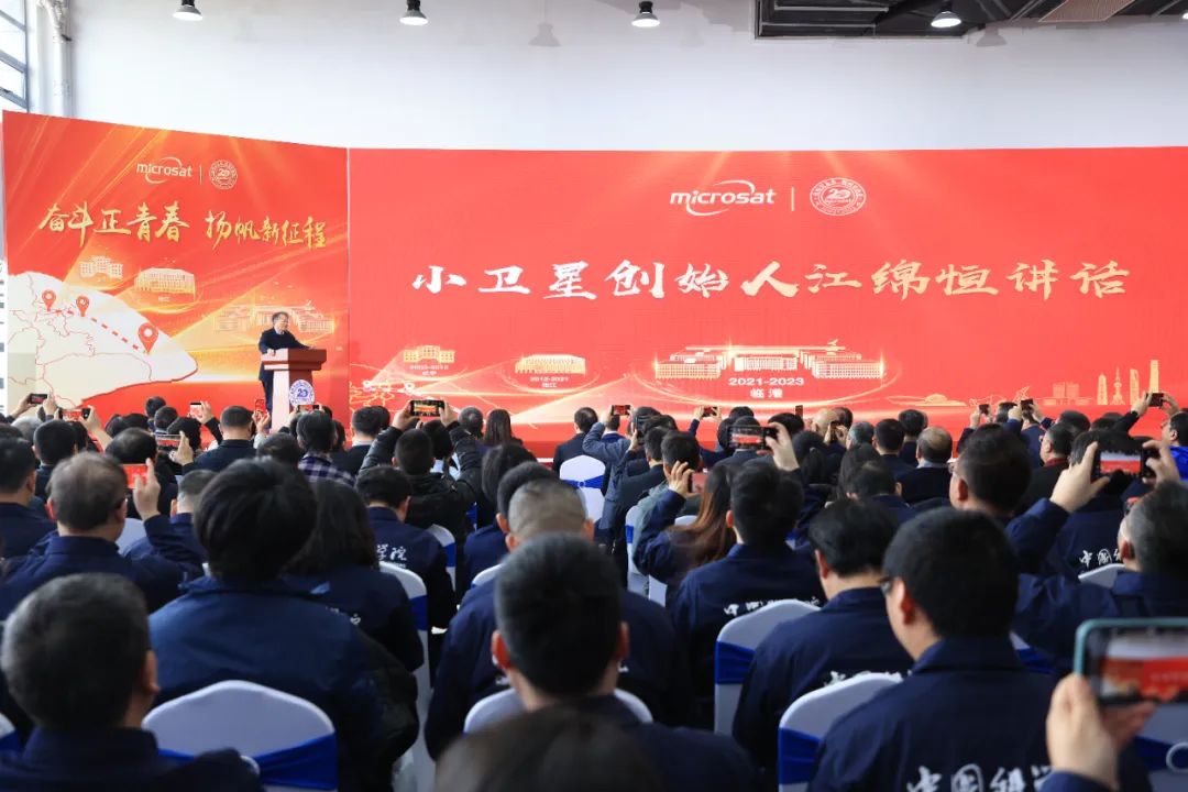 ????會上,“創(chuàng)新一號”總師楊根慶、科研骨干鄭珍珍、青年代表?xiàng)钭咏》謩e代表老、中、青三代小衛(wèi)星人發(fā)言。楊根慶作為老一代小衛(wèi)星人,回顧了小衛(wèi)星一路走來的奮斗歷程;鄭珍珍作為科研骨干代表分享了她的成長歷程,表達(dá)了將勇?lián)鷷r(shí)代重任,與小衛(wèi)星同成長的期待;楊子健結(jié)合自身五年碩博生涯與工作經(jīng)歷,感謝了小衛(wèi)星對青年學(xué)子的關(guān)心和支持,并表示要秉承老一代小衛(wèi)星人的精神創(chuàng)造屬于新一代小衛(wèi)星人的成就。?