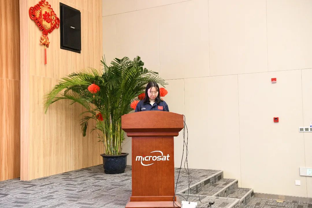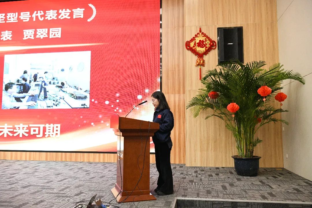 在科研代表發言環節,2024年度重點發射及攻堅型號的四位青年代表陸云、賈翠園、劉琦、蔣國偉分別發表感言,分享了在型號研制、項目競標、關鍵技術攻關等過程中攻堅克難的擔當和創新突破的過程。面對新的一年,陸云表示,更有信心和決心贏得勝利,“靜待星河璀璨”;賈翠園提到將心懷夢想,為衛星的成功研制而努力;劉琦表示,為了續寫小衛星的新篇章,為了不辜負國家的信任和期望,將奮斗始終;蔣國偉表達了“生而不有,為而不恃,功成不必在我,但功成必須有我”的奮斗精神。
