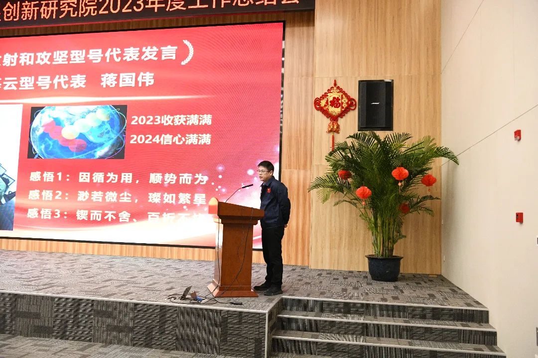 最后,胡海鷹對2024年的奮進方向作了展望,并為大家送上新年祝福。2024年是衛星創新院發展的關鍵之年,是研產年、質量年、能力提升年,希望全體員工能以更加振奮的精神、更加拼搏的姿態,全力完成各項任務目標,同時,祝愿衛星創新院在新的一年再上臺階開新局。