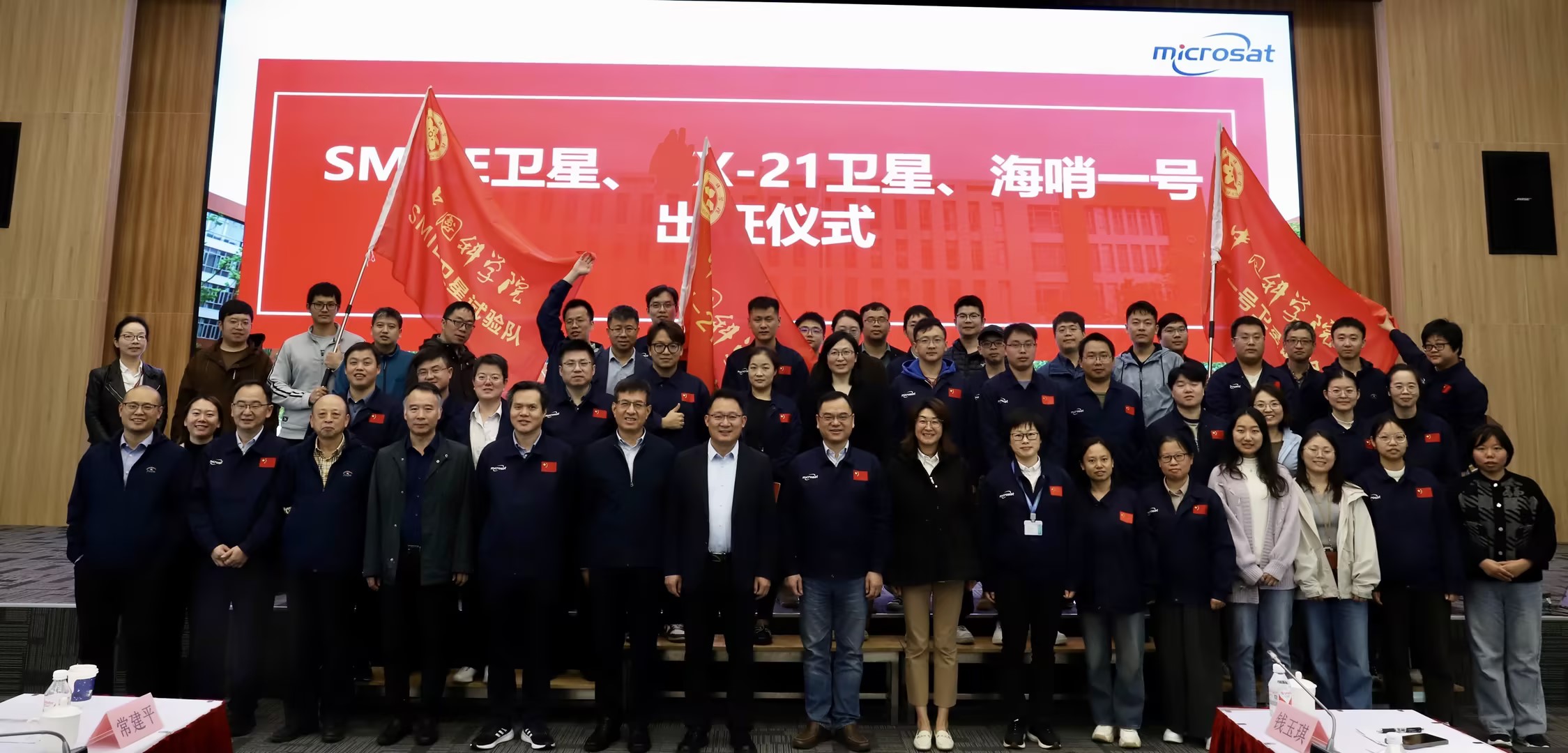 2024年11月11日,中國科學院微小衛星創新研究院在臨港園區舉行太陽風-磁層相互作用全景成像衛星(Solar wind Magnetosphere Ionosphere Link Explorer 以下簡稱SMILE)、創新二十一號衛星、海哨一號等衛星出征儀式,院長胡海鷹、黨委書記、副院長舒嶸、紀委書記羅琦出席會議, 責任專家、相關業務部門和職能部門負責人以及型號研制隊伍參加會議,會議由科研管理部部長沈苑主持。